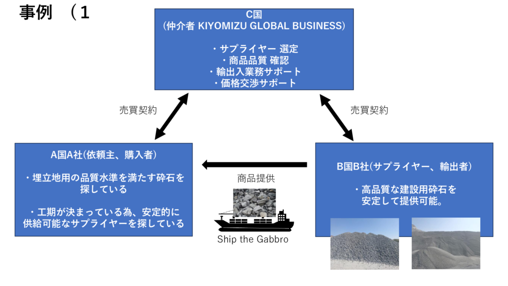 埋立地建設に使用する砕石を探している。自国内では入手が出来ないので海外で探す必要がある。