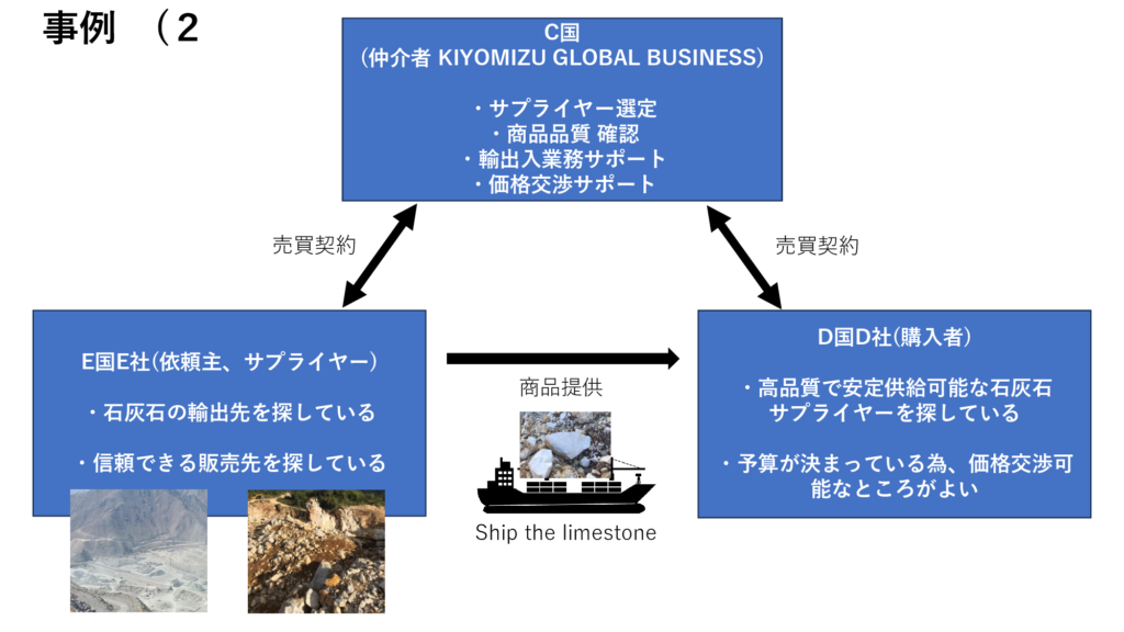 ・KIYOMIZU GLOBAL BUSINESS㈱がD社E社間に入ることにより、契約/売掛金回収の不安を解消